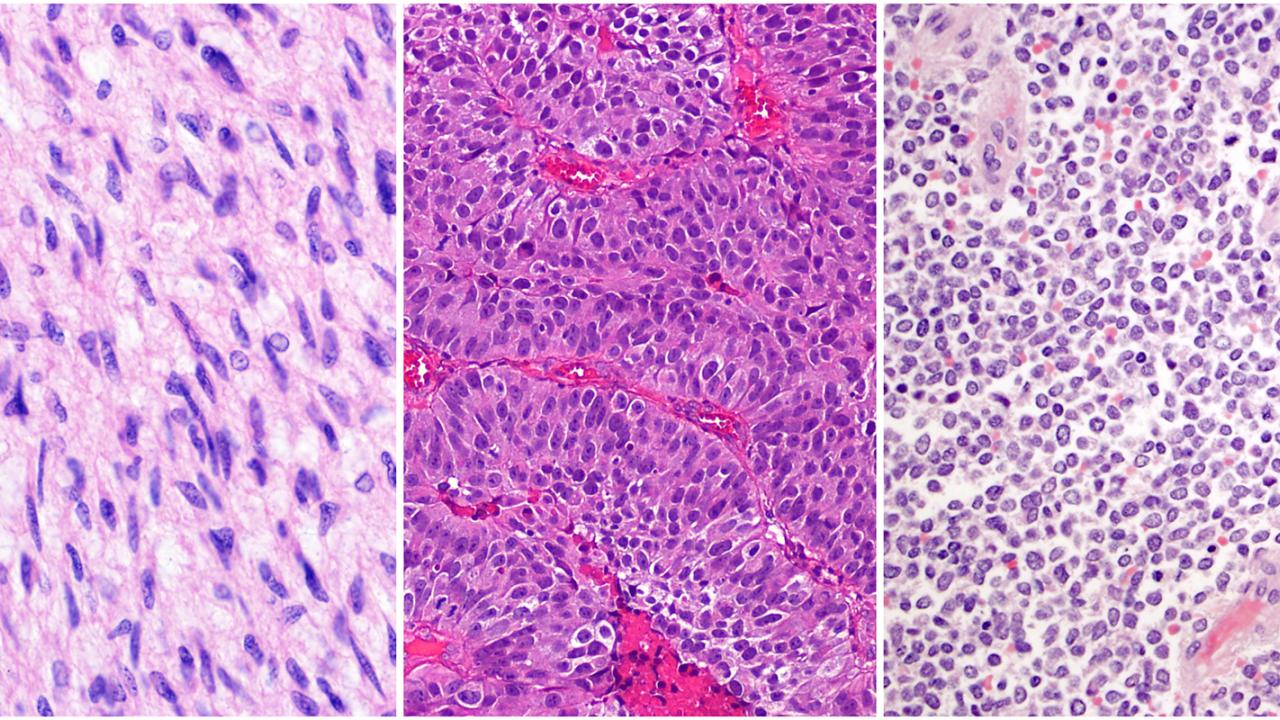 STAG2 is one of the most commonly mutated genes in (left to right) glioblastoma, bladder cancer, and the bone cancer Ewing sarcoma.[2] Images courtesy of David Solomon.