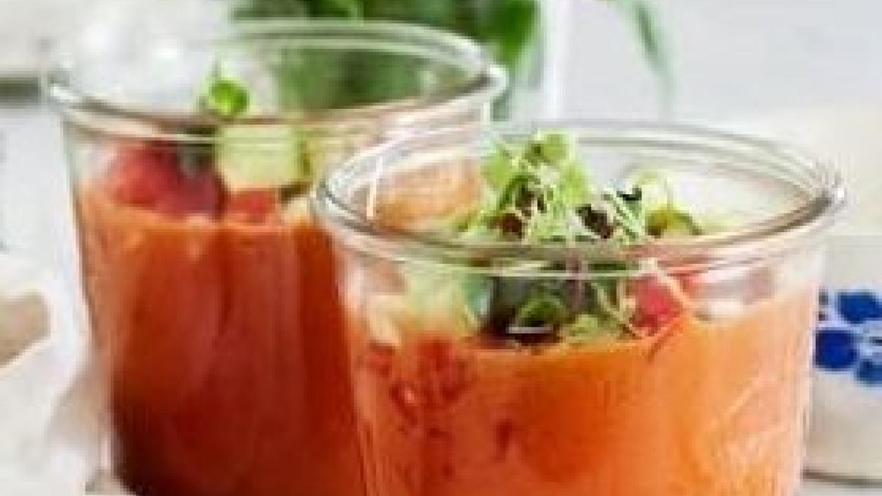 This refreshing cold soup is perfect for a crowd. It includes healthy fats like olive oil that provide richness to the dish. Tomatoes are high in carotenoids, antioxidants that protect our bodies from damage that may lead to cancer. Next time you are looking for a unique way to use up produce in your fridge, make this vegan-friendly dish.